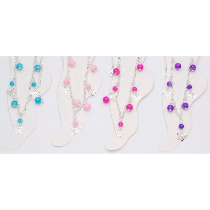 Description / Αλυσίδα ποδιού σε ασημί χρώμα διακοσμημένη με χάντρες και μεταλλικές πεταλούδες