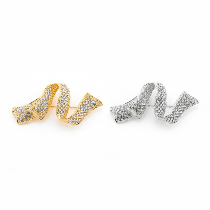 Κάθε γυναίκα γνωρίζει τη δύναμη ενός statement αξεσουάρ να μεταμορφώνει ένα ολόκληρο σύνολο. Αυτή η σπειροειδής καρφίτσα, εμπλουτισμένη με αμέτρητα αστραφτερά στρασάκια, είναι ακριβώς αυτό: ένα κόσμημα που μαγνητίζει τα βλέμματα και προσθέτει μια αίσθηση αρχοντικής φινέτσας. Επιλέξτε ανάμεσα στον ζεστό χρυσό ή τον κλασικό ασημί τόνο και αναδείξτε την προσωπικότητά σας με έναν τρόπο που εκπέμπει αυτοπεποίθηση και απαράμιλλο στυλ.