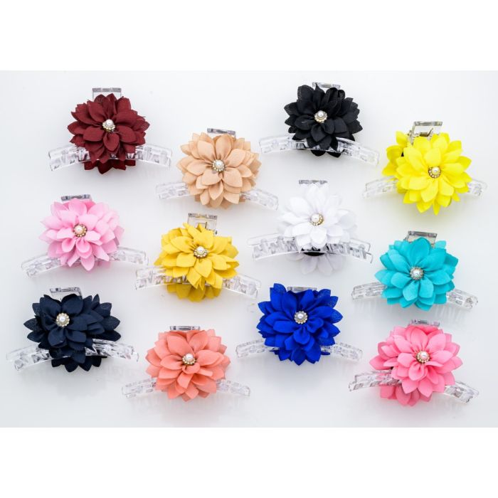 Κλάμερ πλαστικό διάφανο με υφασμάτινη μαργαρίτα διακοσμημένη με πέρλα σε 12 χρώματα