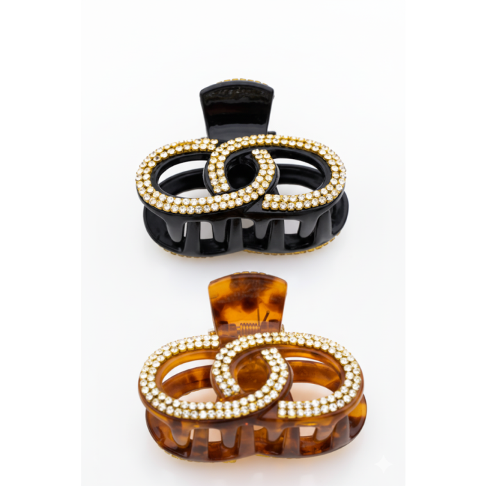 Ανακαλύψτε το απόλυτο αξεσουάρ για να ανανεώσετε το στυλ σας! Αυτό το πλαστικό κλάμερ, με το ιδιαίτερο design των ενωμένων κρίκων και τη λάμψη των στρας, είναι η τέλεια επιλογή για τη σύγχρονη γυναίκα που αγαπά τα αξεσουάρ που ξεχωρίζουν.