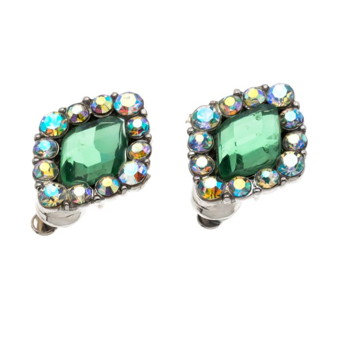 Κλίπ μεταλλικό με πετρά σε σχήμα ρόμβο και λευκα στράς