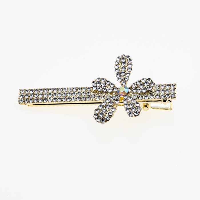 Κλιπ μεταλλικό με στρας και πέρλες σε 3 σχέδια
