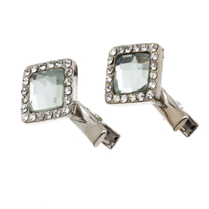 Κλίπ μεταλλικό μικρό τετράγωνη πέτρα με λευκά στράς