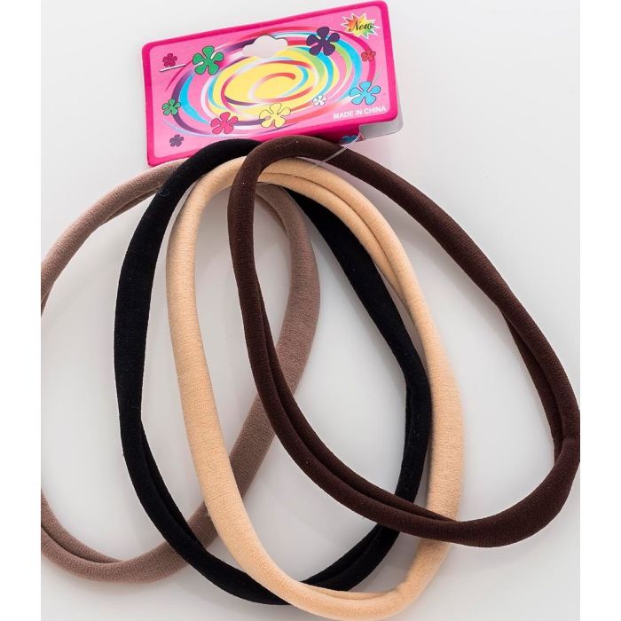 Description / Λάστιχο υφασμάτινο 12εκ σε 3 γήινες αποχρώσεις και μαύρο (καρτέλα 4 τεμάχια)