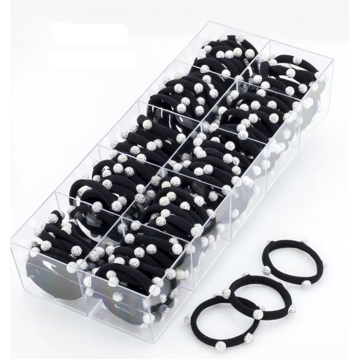 Λάστιχο υφασμάτινο μαύρο με ανάγλυφες ασημί χάντρες ( 2 τεμάχια)