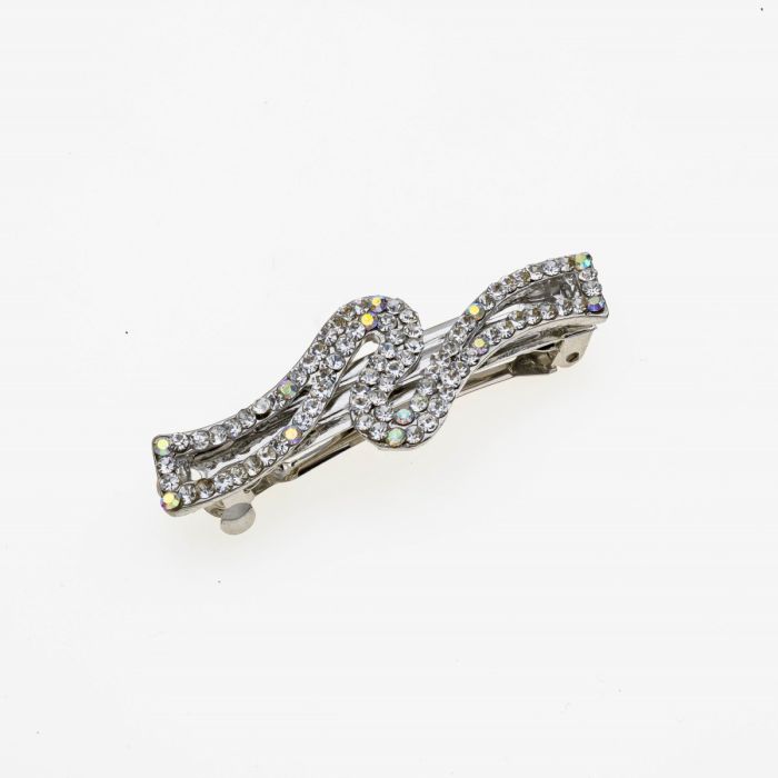 Η στιβαρή μεταλλική της κατασκευή εγγυάται σταθερό και ασφαλές κράτημα, διατηρώντας το χτένισμά σας άψογο καθ' όλη τη διάρκεια της ημέρας, χωρίς να γλιστράει ή να ταλαιπωρεί τα μαλλιά σας. Τα αστραφτερά στρας, ενσωματωμένα σε κάθε ένα από τα 7 μοναδικά σχέδια, αιχμαλωτίζουν το φως με κάθε σας κίνηση, προσθέτοντας μια αίσθηση διακριτικής πολυτέλειας και φινέτσας. Είτε επιλέγετε ένα κλασικό σχήμα για το γραφείο, ένα πιο περίτεχνο για μια βραδινή έξοδο, είτε ένα παιχνιδιάρικο για τις χαλαρές σας στιγμές, αυτή η μπαρέτα προσδίδει διαχρονική κομψότητα και πρακτικότητα, συμπληρώνοντας κάθε σας εμφάνιση με στυλ και λάμψη.