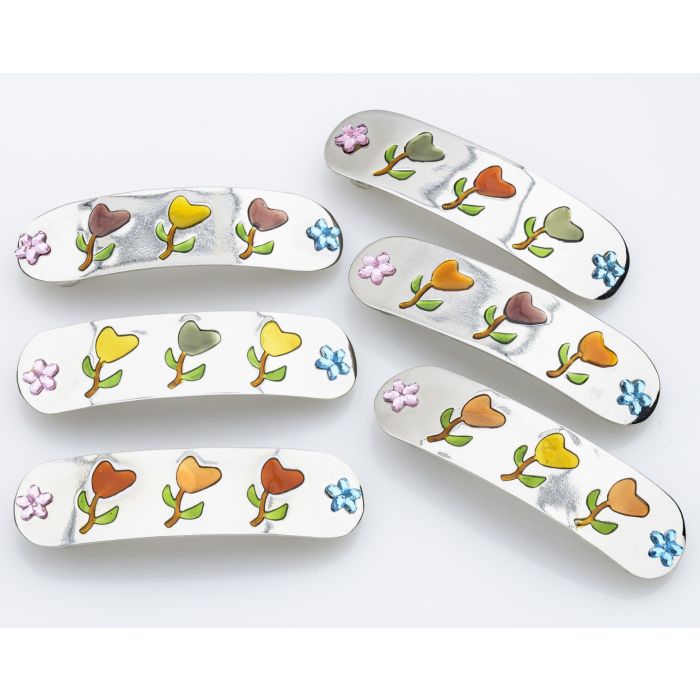 Μπαρέτα μεταλλική με λουλούδια σε 6 συνδιασμούς χρωμάτων