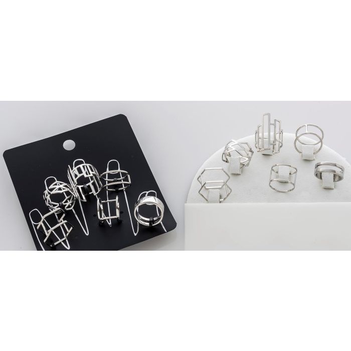 Αυτό το ασημί μεταλλικό σετ δαχτυλίδια είναι ο τέλειος τρόπος για να προσθέσετε μια δόση μοντέρνας κομψότητας και εντυπωσιακής λάμψης στην εμφάνισή σας. Η ποικιλία των σχεδίων και η λαμπερή τους όψη θα σας ενθουσιάσουν.