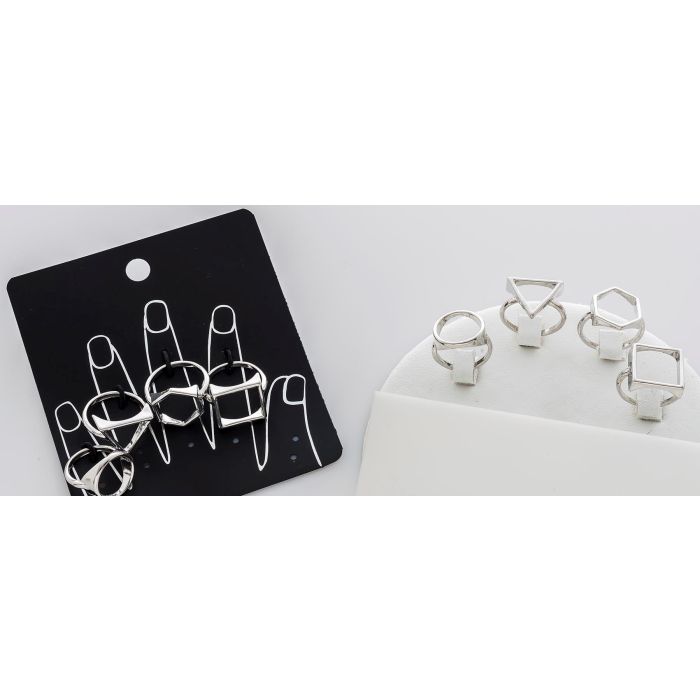 Description / Σέτ δαχτυλίδια σε ασημί χρώμα με γεωμετρικά σχήματα
