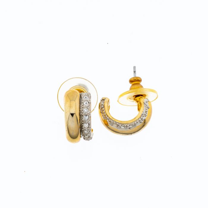 Σκουλαρίκια διπλά μεταλλικά σε χρυσό χρώμα διακοσμημένα με στράς