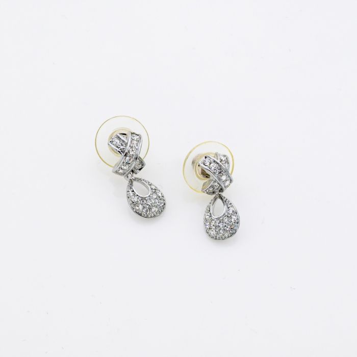 Description / Σκουλαρίκια κρεμαστά δάκρυ ασημί διακοσμημένα με στράς