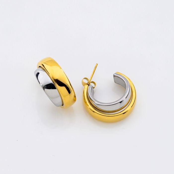 Σκουλαρίκια Κρίκοι Δίχρωμοι "Chunky" (Χρυσό & Ασημί)