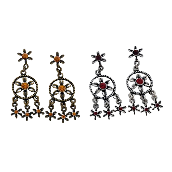 Σκουλαρίκια μεταλλικά αλπακάς και μπρούτζος με πέτρες