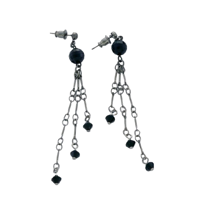 Description / Σκουλαρίκια μεταλλικά αλυσίδες μαύρες χάντρες