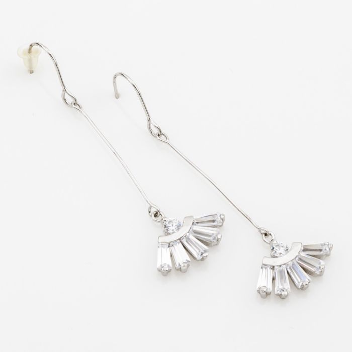 Σκουλαρίκια μεταλλικά ασημί κρεμαστά διακοσμημένα με ζιργκόν σχέδιο βεντάλια