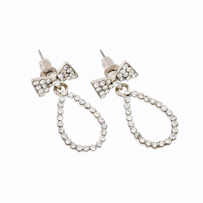 Σκουλαρίκια μεταλλικά ασημί κρεμαστά με φιόγκο
