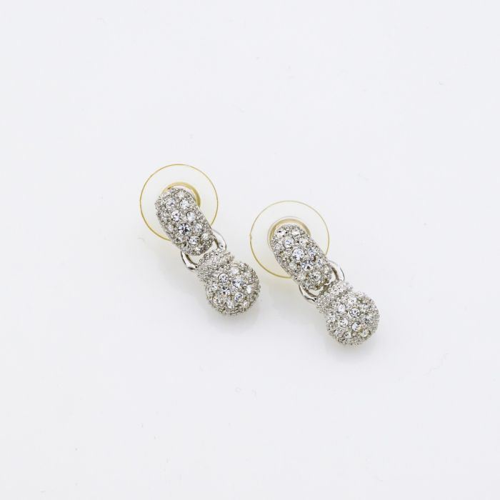 Description / Σκουλαρίκια μεταλλικά ασημί κρεμαστά με λευκά στράς