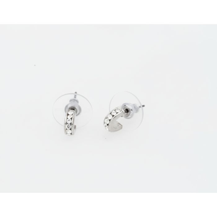 Description / Σκουλαρίκια μεταλλικά ασημί κρικάκια με στράς