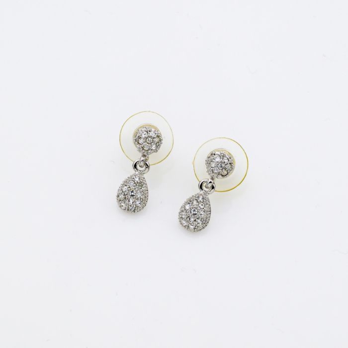 Description / Σκουλαρίκια μεταλλικά ασημί με λευκά στράς