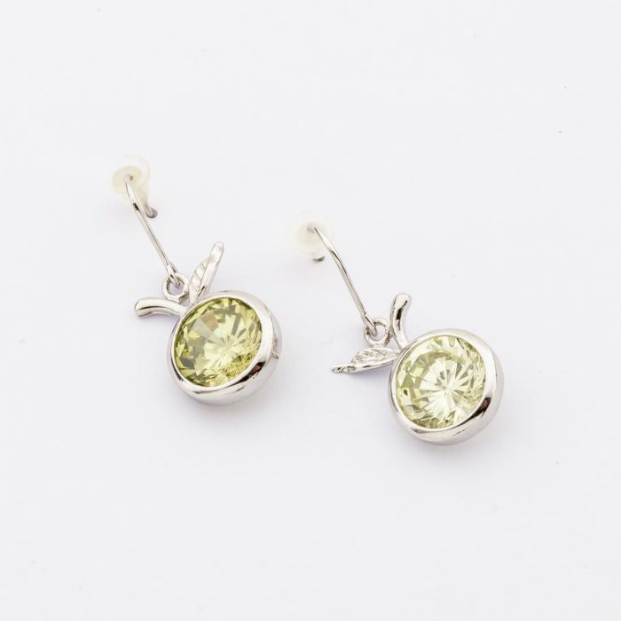Description / Σκουλαρίκια μεταλλικά ασημί με ζιργκόν σε σχέδιο μήλο