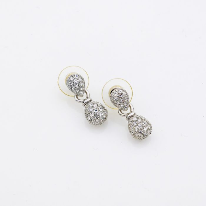 Αυτά τα μικρά μεταλλικά σκουλαρίκια σε ασημί χρώμα προσφέρουν διακριτική λάμψη χάρη στα λευκά στρας που τα διακοσμούν. Ιδανικά για καθημερινές εμφανίσεις ή ως κομψό δώρο για αγαπημένα πρόσωπα.