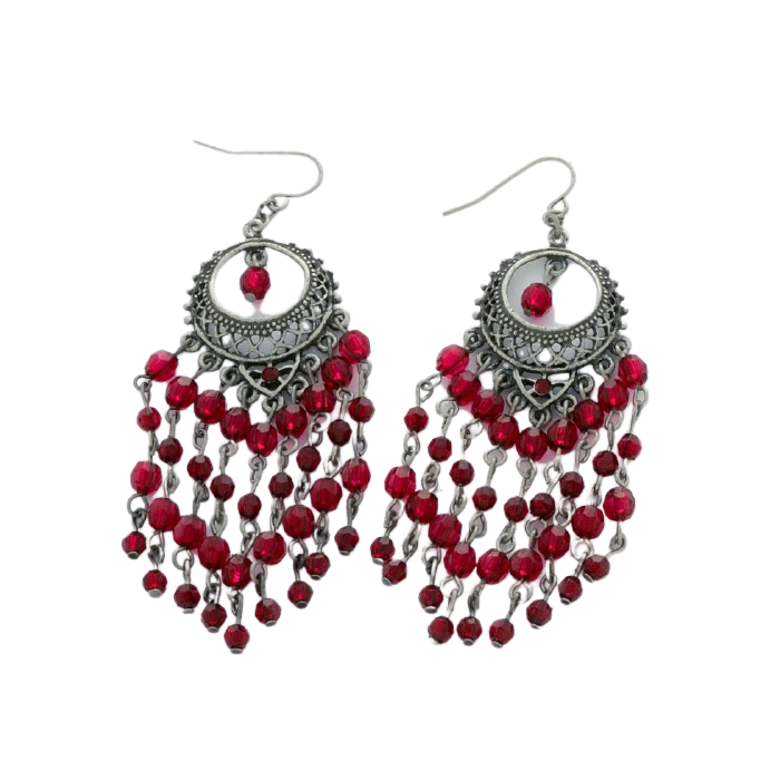 Ψάχνετε ένα κόσμημα που να αφηγείται μια ιστορία, να εκφράζει το ελεύθερο πνεύμα σας και να προσθέτει μια μοναδική πινελιά χρώματος και υφής στην εμφάνισή σας; Αυτά τα μεταλλικά σκουλαρίκια είναι η ιδανική επιλογή! Ο συνδυασμός του παλαιωμένου ασημένιου φινιρίσματος με τις διακριτικές αλυσίδες και τις ζωηρές κόκκινες χάντρες δημιουργεί ένα εντυπωσιακό αποτέλεσμα που αποπνέει vintage γοητεία και boho αέρα. Είναι το κόσμημα που θα σας κάνει να ξεχωρίσετε, χαρίζοντας σας αυτοπεποίθηση και στυλ.