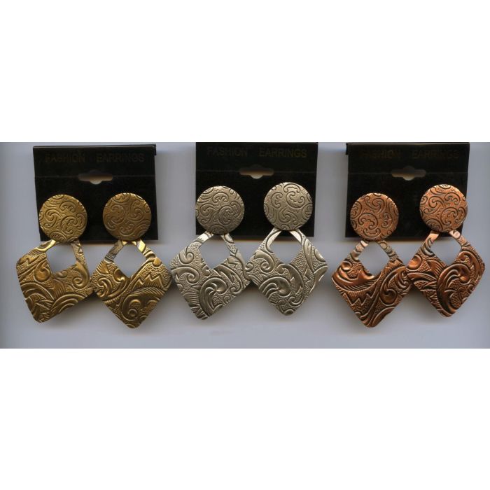 Σκουλαρίκια μεταλλικά χαραγμένα σχέδια σε ρόμβους