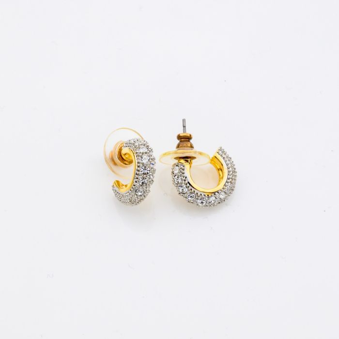 Description / Σκουλαρίκια μεταλλικά χρυσά κρικάκια με λευκά στράς