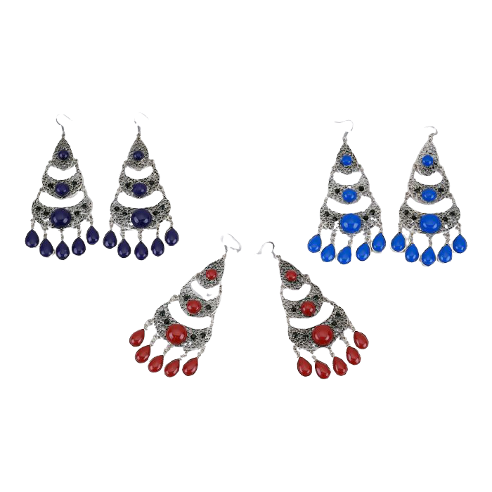 Σκουλαρίκια μεταλλικά κρεμαστά 7εκ διακοσμημένα με πέτρες σε 3 χρώματα