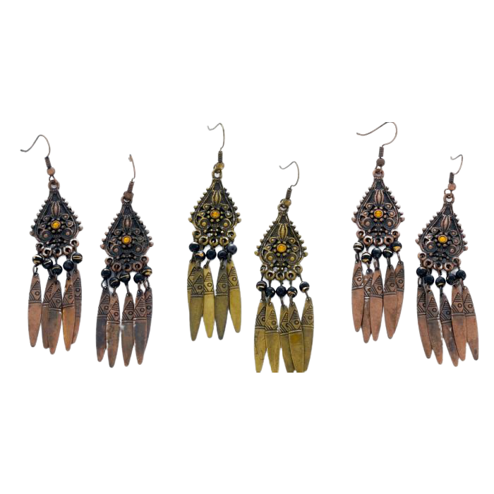 Σκουλαρίκια μεταλλικά κρεμαστά χαραγμένα και παλαιωμένα