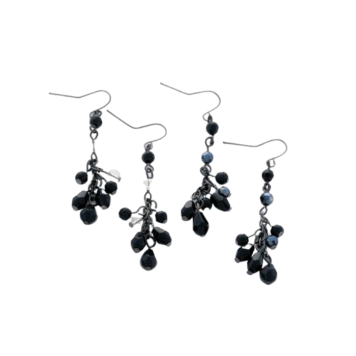 Σκουλαρίκια μεταλλικά κρεμαστά διακοσμημένα με μαύρες χάντρες