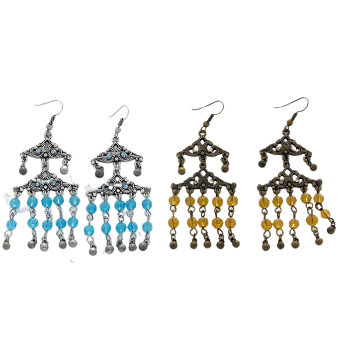 Σκουλαρίκια μεταλλικά κρεμαστά διακοσμημένα με μπλέ και πορτοκαλί χάντρες