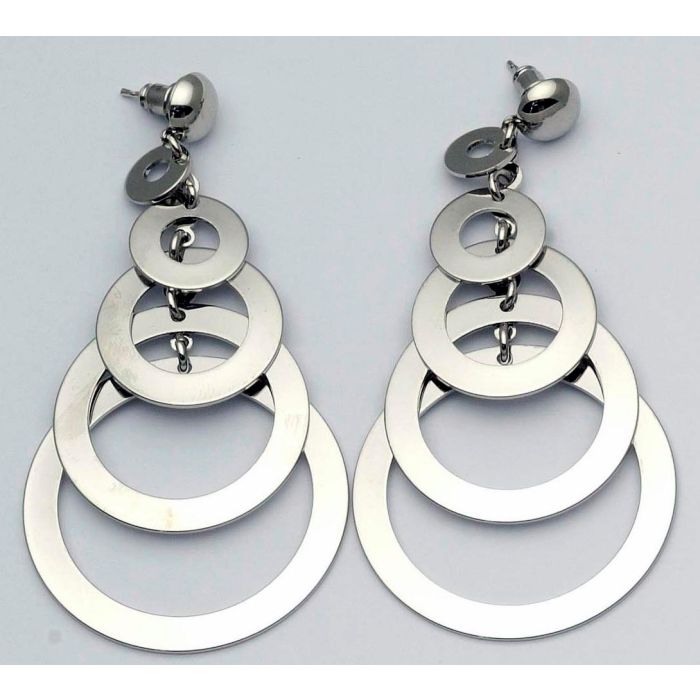 Σκουλαρίκια μεταλλικά κρεμαστά με 5 κύκλους σε ασημί χρώμα