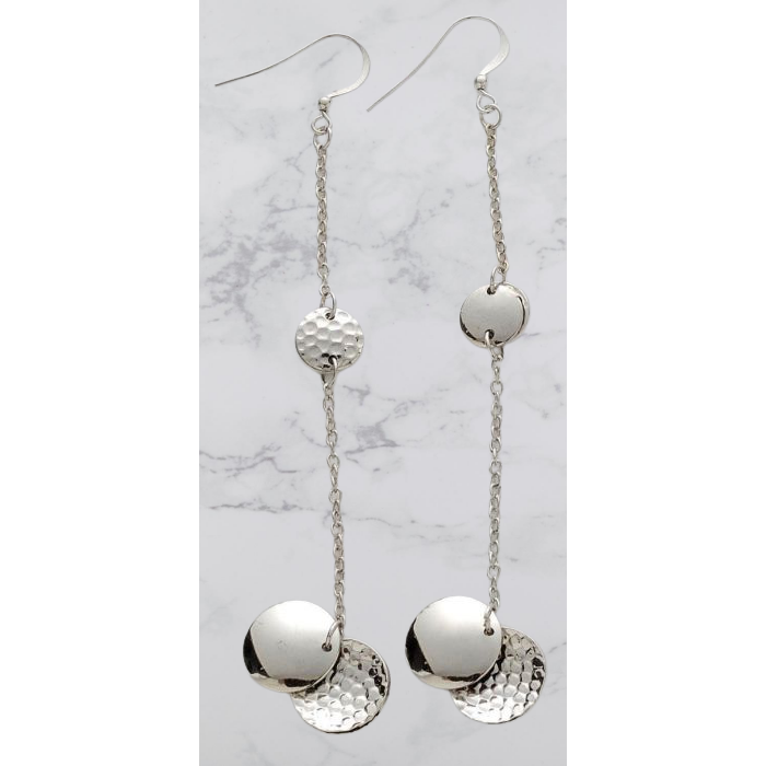 Description / Σκουλαρίκια μεταλλικά κρεμαστά με ασημί αλυσίδα και σφυρήλατους κύκλους