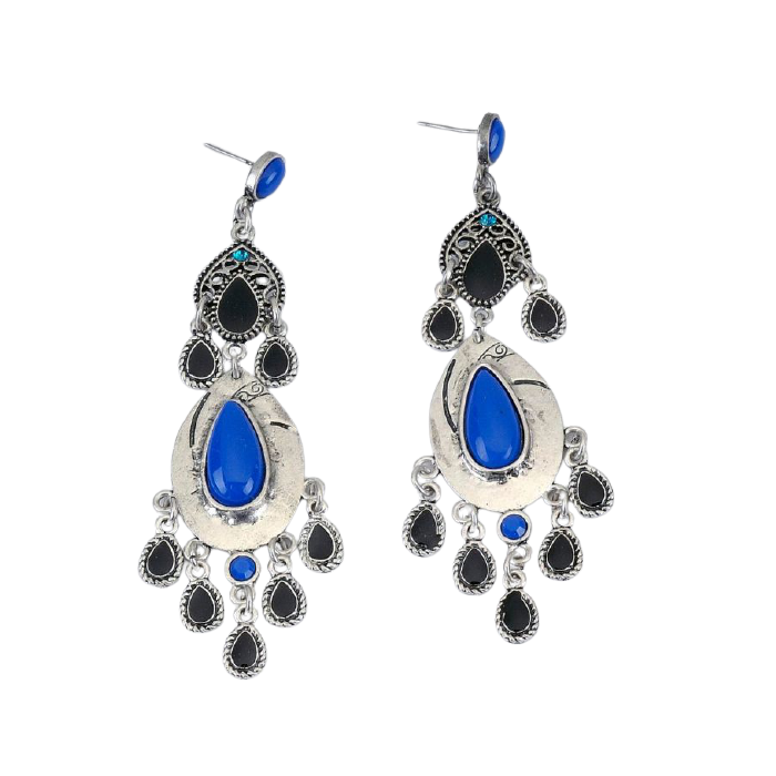Description / Σκουλαρίκια μεταλλικά κρεμαστά με πέτρες