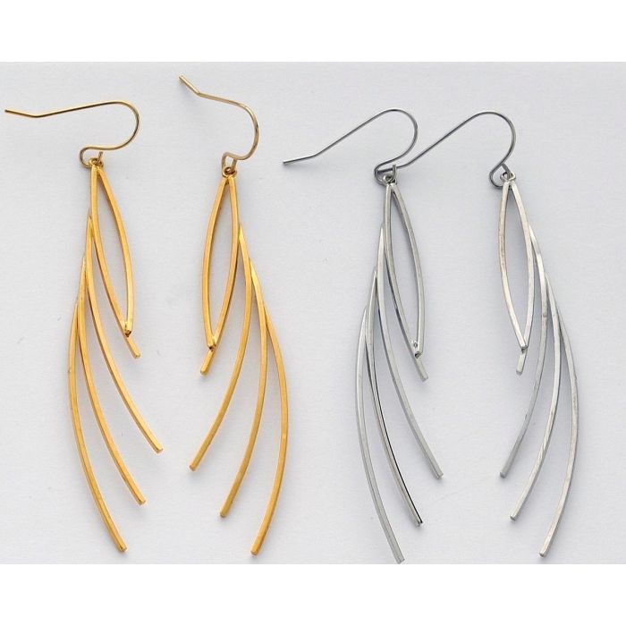 Ανακαλύψτε την ομορφιά των καθαρών γραμμών με αυτά τα κομψά κρεμαστά μεταλλικά σκουλαρίκια. Ο σχεδιασμός τους επικεντρώνεται στο τετράγωνο σχήμα του σύρματος, το οποίο προσδίδει μια μοντέρνα, γεωμετρική αισθητική. Η κρεμαστή τους γραμμή εξασφαλίζει κίνηση και χάρη, ενώ η μεταλλική τους υφή, διαθέσιμη σε χρυσό και ασήμι, προσφέρει μια αίσθηση διαχρονικής κομψότητας.