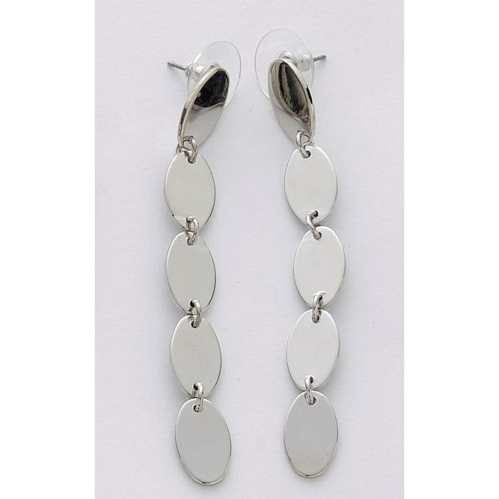 Σκουλαρίκια μεταλλικά κρεμαστά σε ασημί χρώμα με με 5 οβάλ λεπτομέρειες