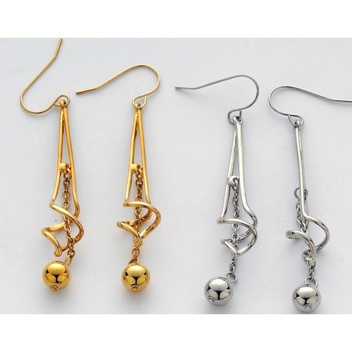 Σκουλαρίκια μεταλλικά μακριά κρεμαστά με περίτεχνο σχέδιο σε 2 χρώματα
