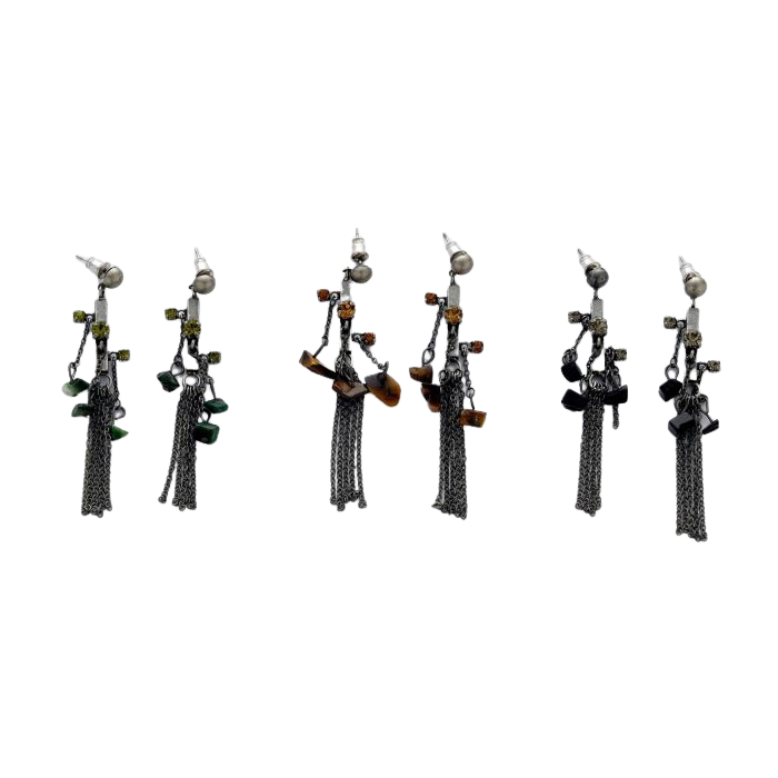 Description / Σκουλαρίκια μεταλλικά με αλυσίδες και πέτρες σε 3 χρώματα
