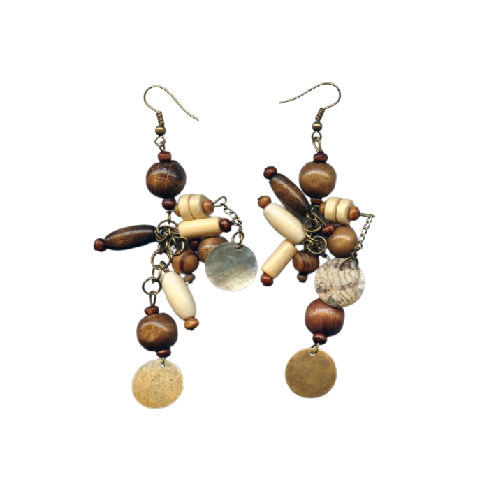 Σκουλαρίκια μεταλλικά με φίλντισι σε 3 χρώματα και ξύλινες λεπτομέρειες