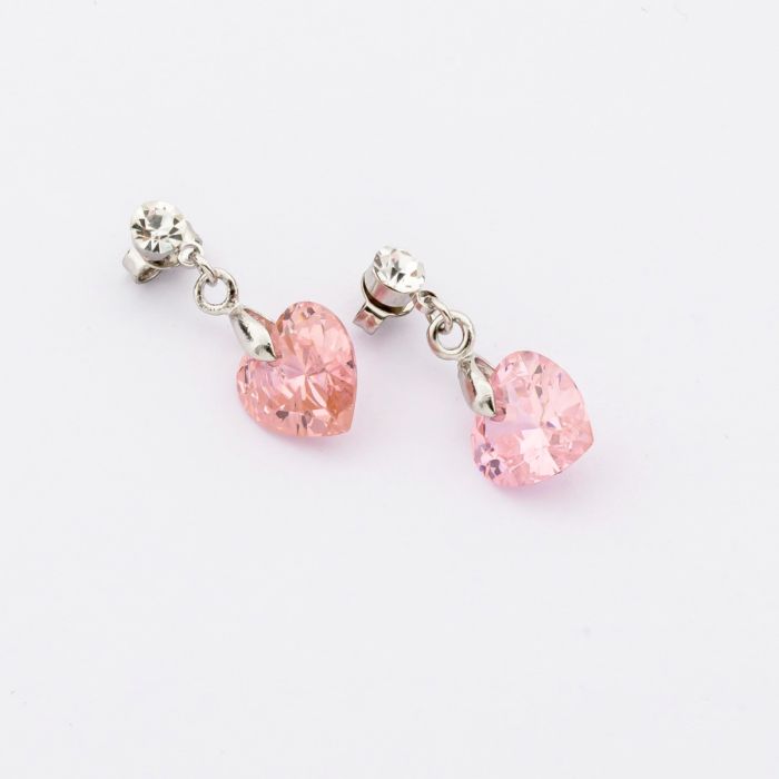 Σκουλαρίκια μεταλλικά με στράς και ζιργκόν σε σχήμα καρδιά