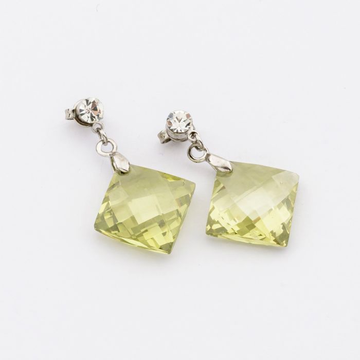 Σκουλαρίκια μεταλλικά με ζιργκόν σε σχήμα ρόμβο