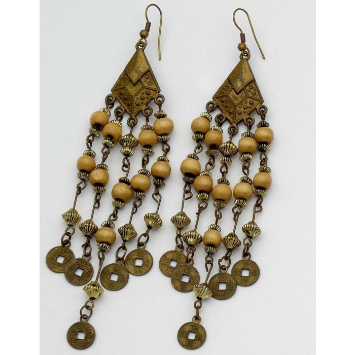Boho Chic: Μακριά Μπρονζέ Σκουλαρίκια με Ξύλινες Χάντρες για Ξεχωριστές Εμφανίσεις