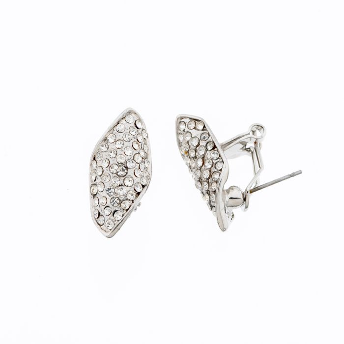 Description / Σκουλαρίκια μεταλλικά οβάλ ασημί με στράς