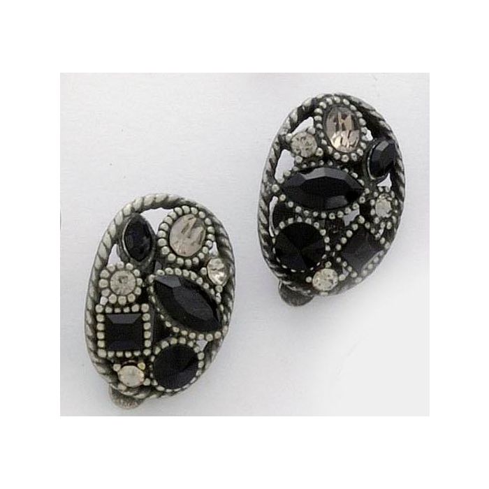 Σκουλαρίκια μεταλλικά σε ασημί χρώμα με κλίπ διακοσμημένα με λευκές και μαύρες χάντρες