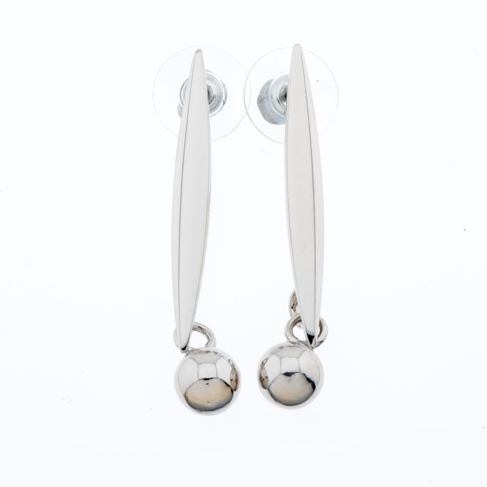 Σκουλαρίκια μεταλλικά σε ασημί χρώμα σχέδιο φύλλο με κρεμαστή χάντρα