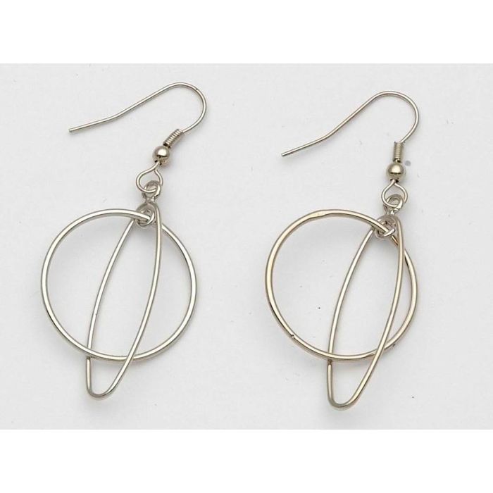 Σκουλαρίκια μεταλλικά σε ασημί χρώμα, σχέδιο κύκλος μέσα σε οβάλ