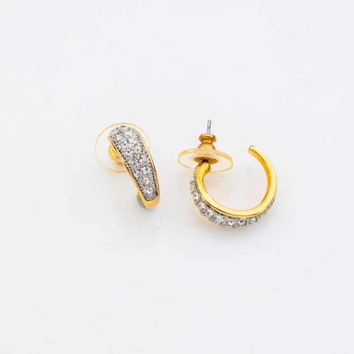 Η ζεστή λάμψη του χρυσού μετάλλου συνδυάζεται αρμονικά με το φως που διαχέουν τα μικροσκοπικά λευκά στρας. Το αποτέλεσμα είναι μια πινελιά φινέτσας που αναδεικνύει την εμφάνισή σου χωρίς να την επισκιάζει. Είναι ιδανικά για να τα φοράς μόνα τους για ένα minimal, προσεγμένο αποτέλεσμα, ή για να αποτελέσουν τη βάση για ένα εντυπωσιακό "ear stack", συνδυάζοντάς τα με άλλα σκουλαρίκια. Είναι το μυστικό για αβίαστη κομψότητα, από το πρωί στο γραφείο, μέχρι το βράδυ για ένα ποτό.