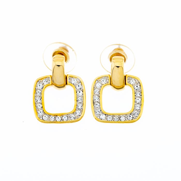 Σκουλαρίκια μεταλλικά σε χρυσό χρωμα τετράγωνα διακοσμημένα με στράς