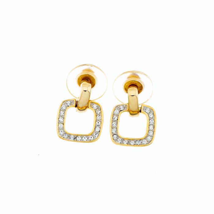 Description / Σκουλαρίκια μεταλλικά σε χρυσό χρώμα τετράγωνα με στράς